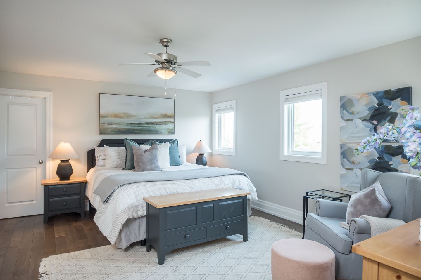 Primary with stunning ensuite bath (5pc) with heated floors, floor mounted bathtub filler, Decorport mirrors and enormous walk-in closet