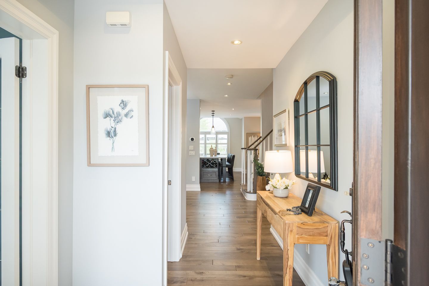 Hand scraped hardwood flooring throughout