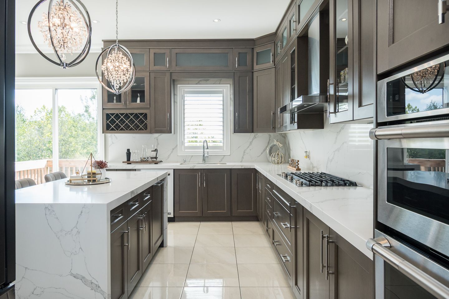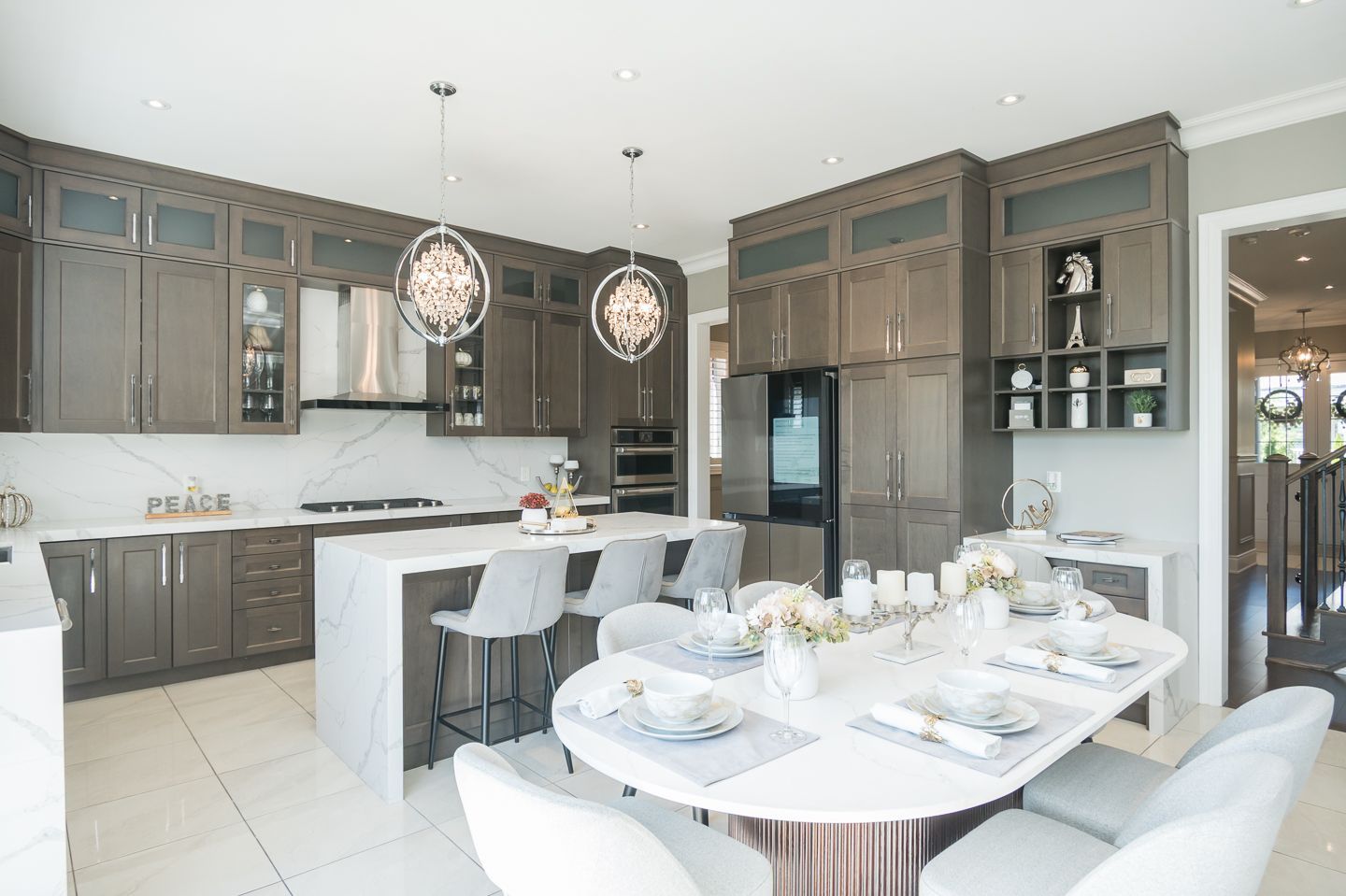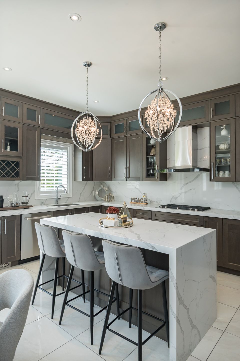 STUNNING CEILING HEIGHT CABINETS WITH GLASS INSERTS
