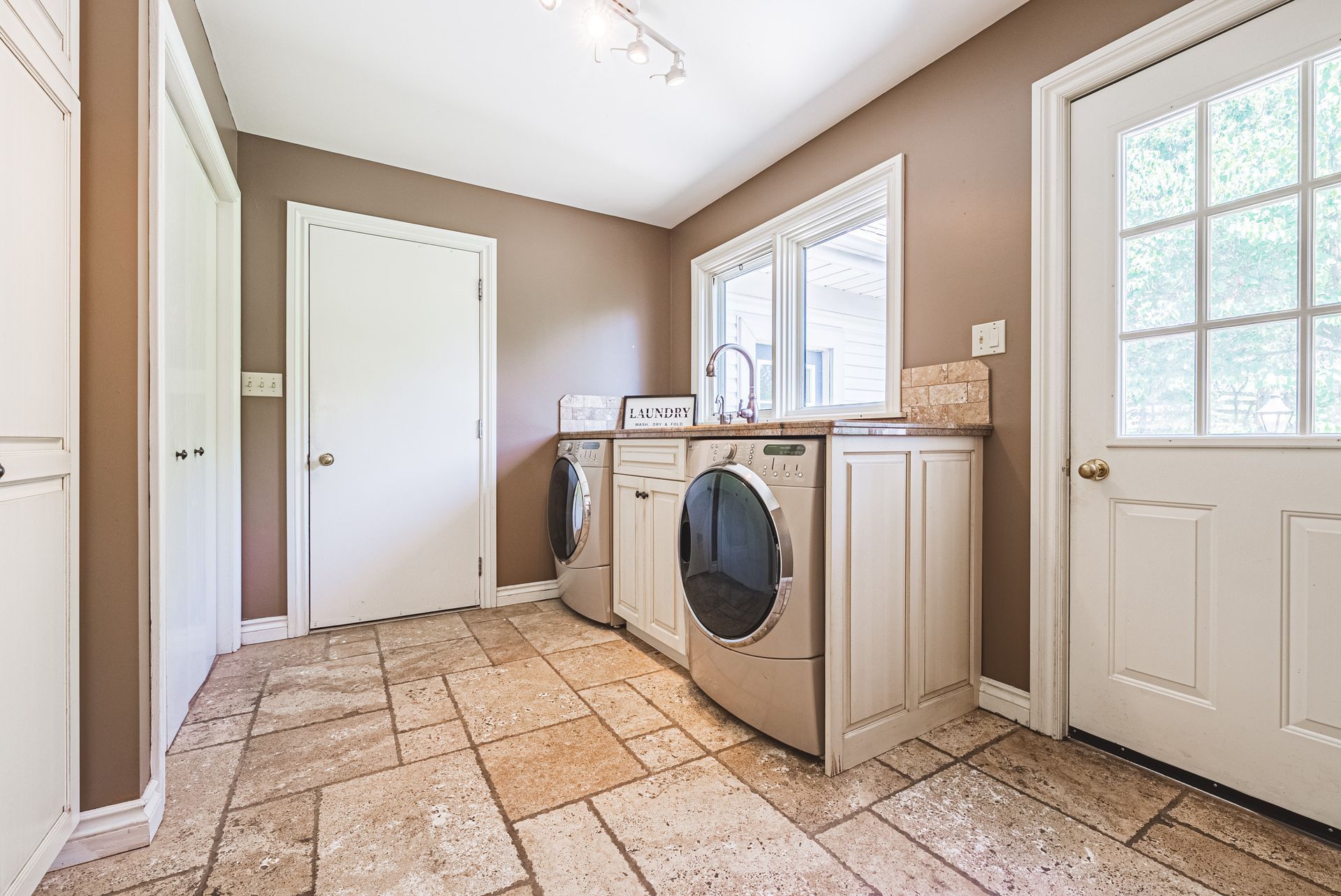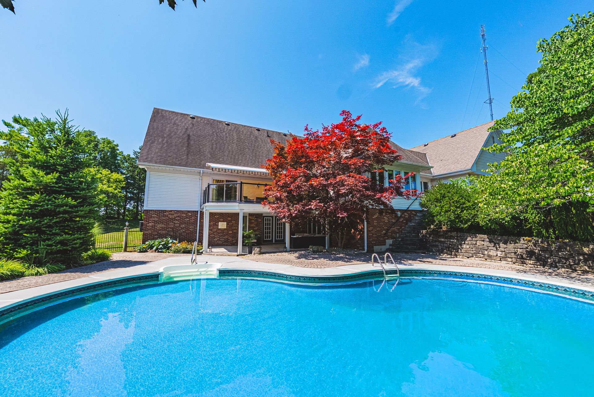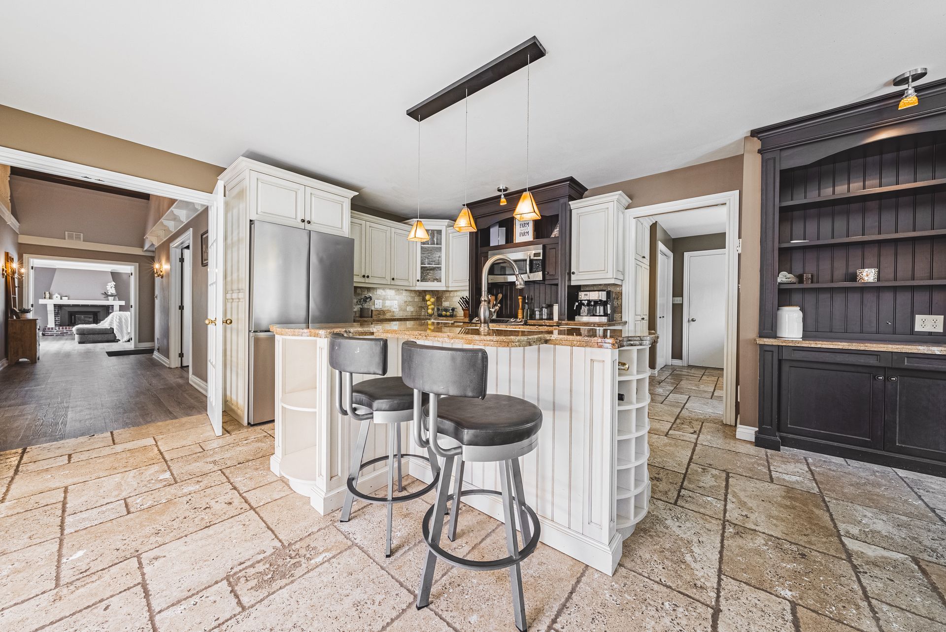 Country living shines with an in-ground pool retreat, a walkout basement with a full second kitchen and bar, a sauna, and an oversized two car garage. A separate detached garage with a loft adds even more storage. Parking is plentiful. The throughway makes moving trailers, farm equipment, and machinery simple.