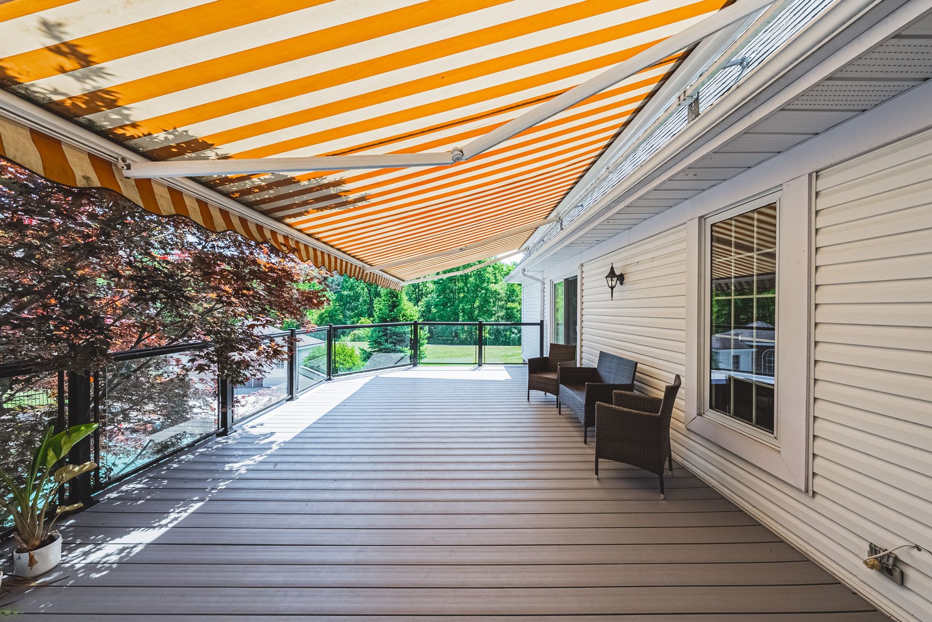 Covered porch leading directly to the inground pool — excellent for entertaining and flow