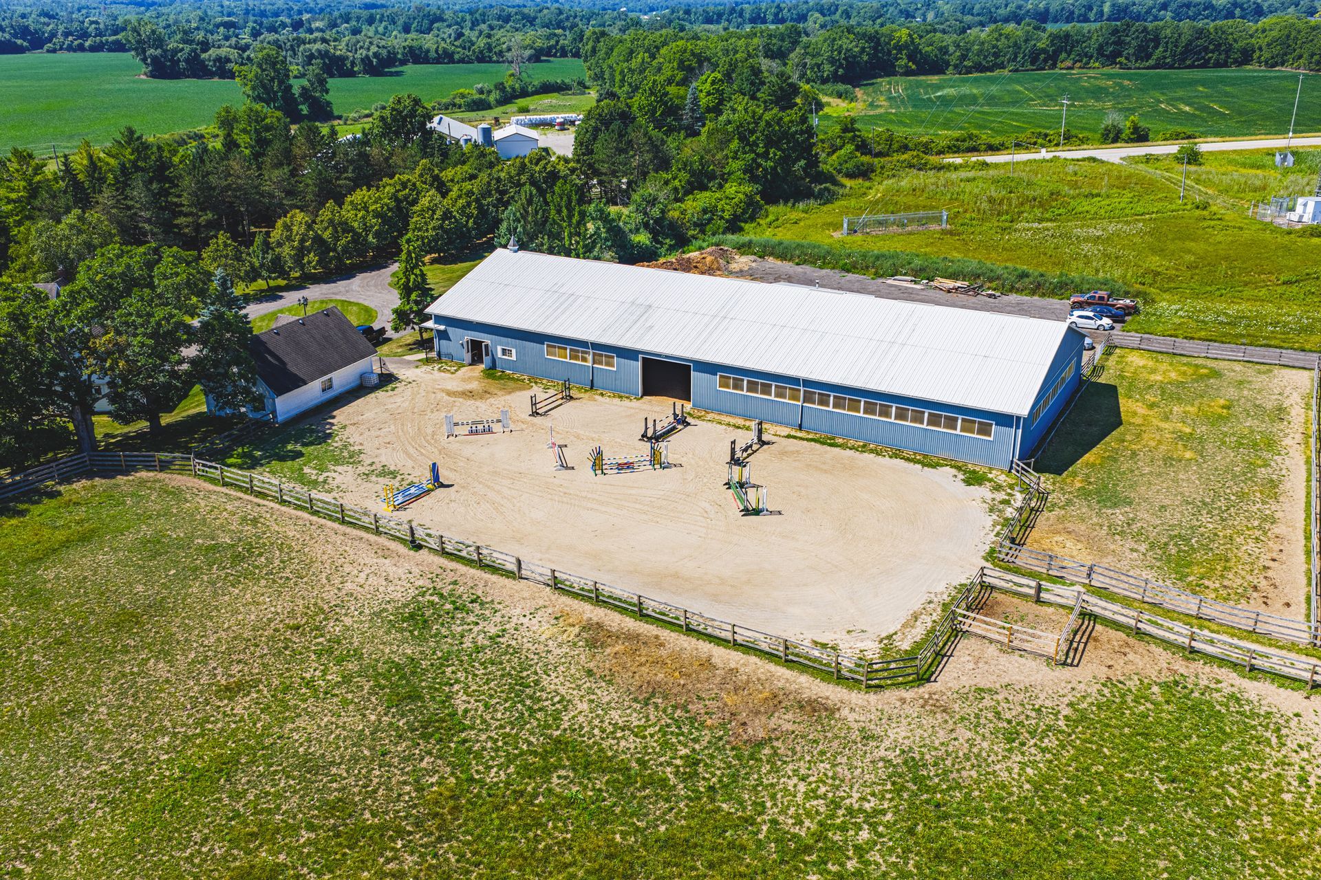 The farm infrastructure sets this property apart. A massive fully insulated and heated barn offers more than 10,000 square feet of space with natural gas service. The barn includes 8 stalls plus 2 grooming stalls, a tack room, washroom, indoor riding arena, outdoor sand ring, and well maintained paddocks. The setup supports horses or a variety of farm or hobby uses. The property provides outstanding storage, work areas, and flexibility for many agricultural or rural operations.