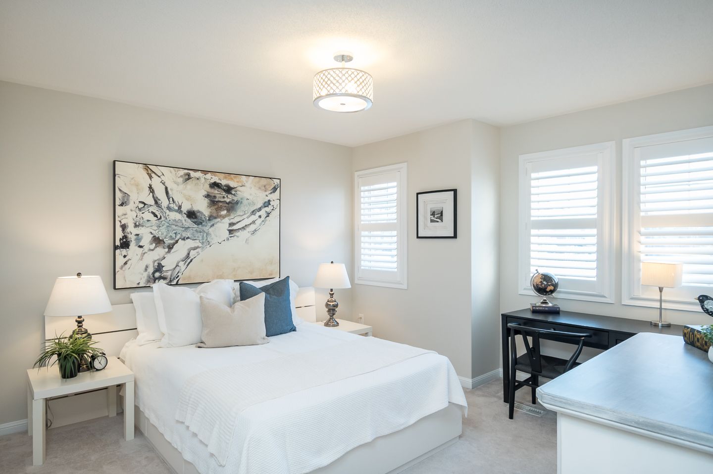 Upstairs, you’ll find four spacious bedrooms, a convenient second floor laundry room, & a serene primary retreat complete with a walk in closet and ensuite with a soaker tub. Window shutters throughout add style and functionality, and interior access from the double garage offers everyday convenience with parking for four.