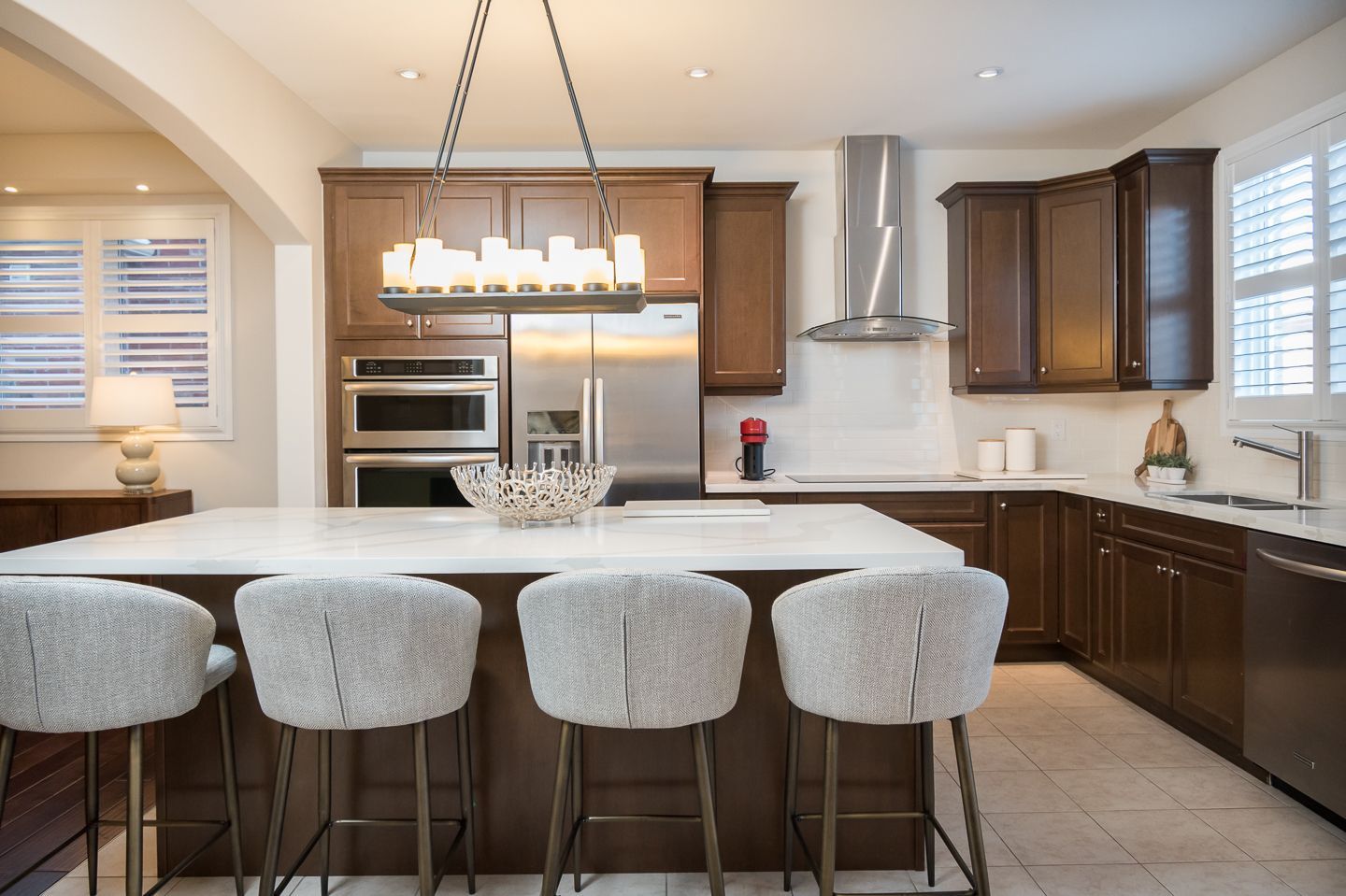 The heart of this home is its upgraded kitchen—an impressive, chef inspired space featuring an oversized island, white quartz countertops, extended dark cabinetry, & stainless-steel appliances including a wall oven, induction cooktop, built in microwave, and beverage fridge. With direct access to the beautifully landscaped, fully fenced backyard and spacious patio with hot tub, it’s designed for effortless cooking, entertaining, & everyday living.