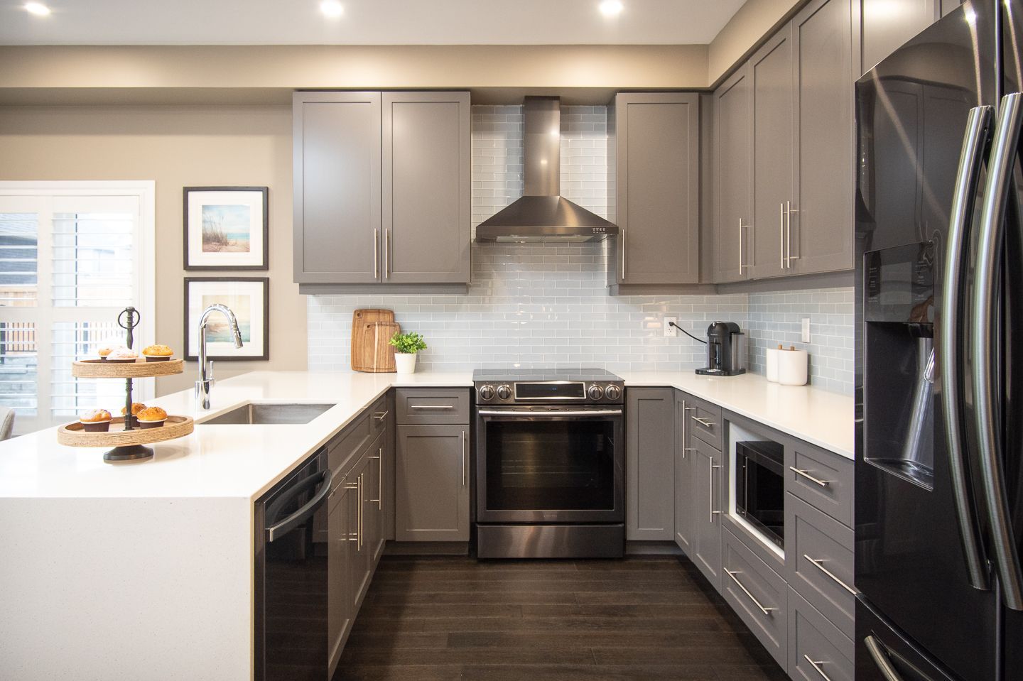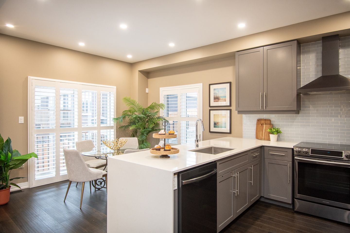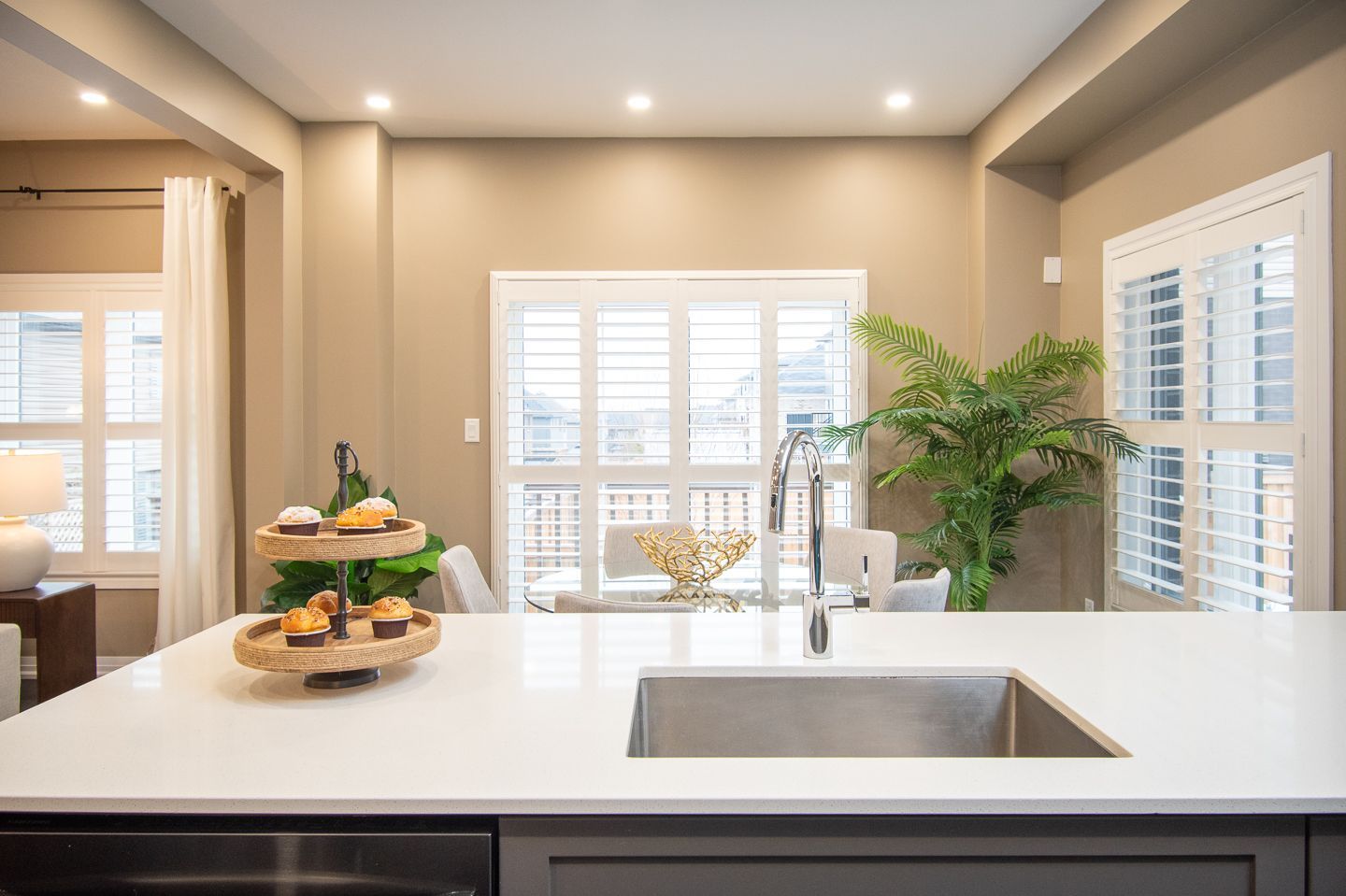 WHITE QUARTZ COUNTERS WITH WATERFALL INSTALLATION