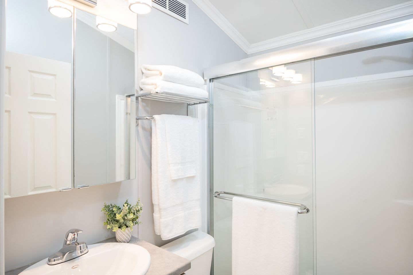 Full 3pc bathroom with glass enclosure shower