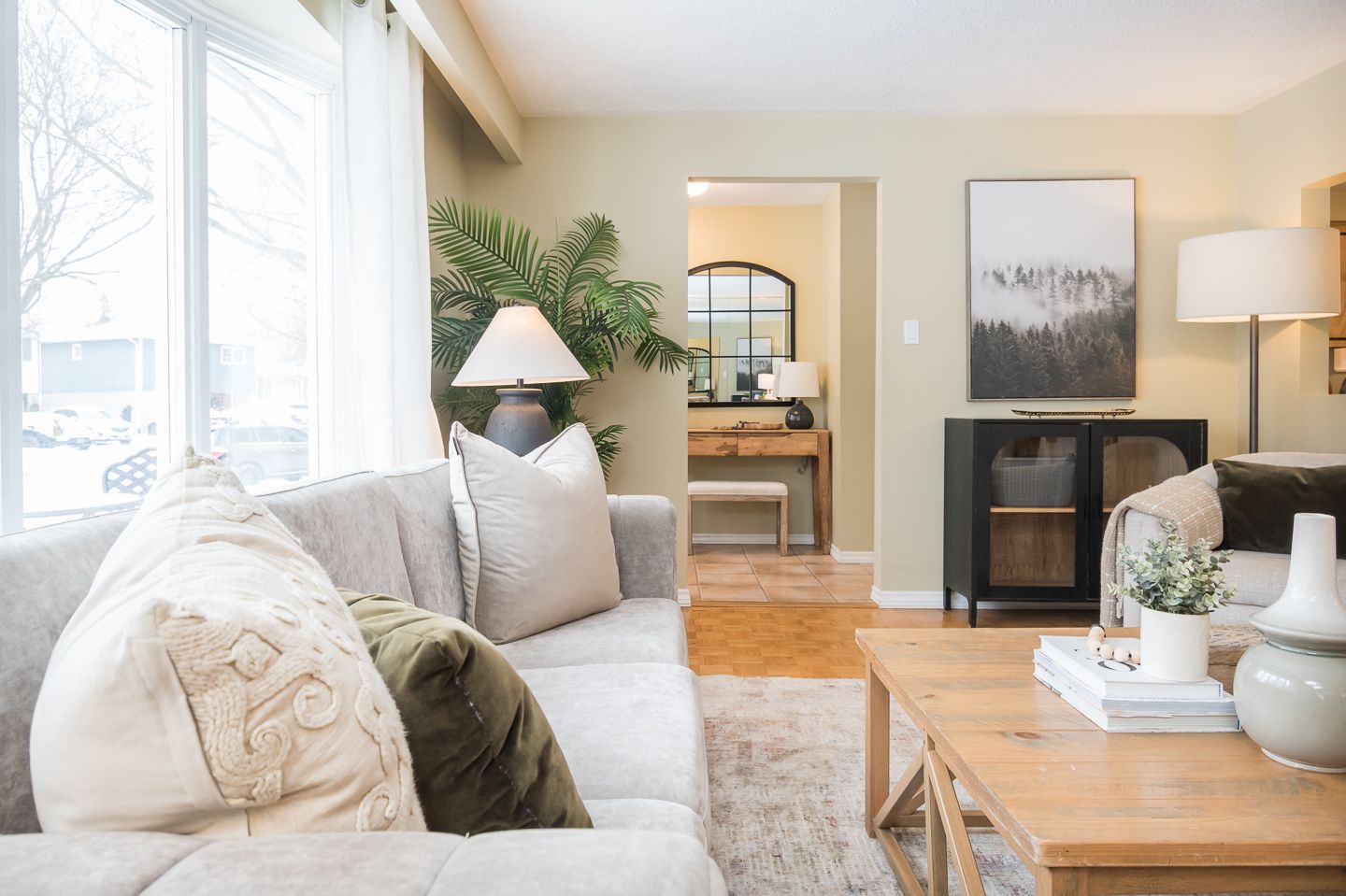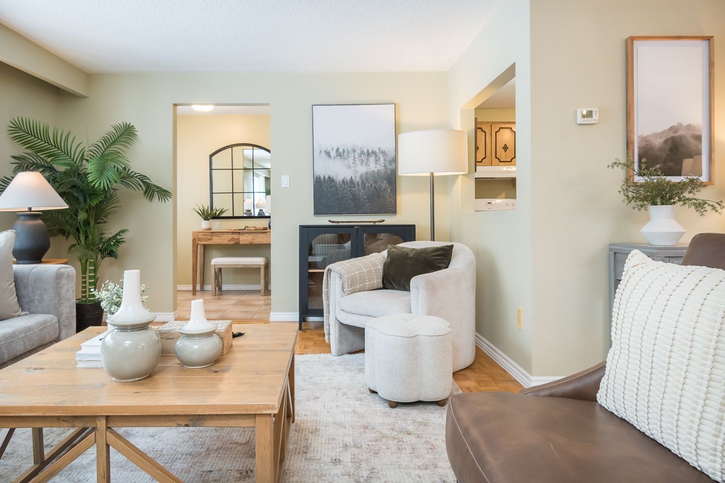 Inside, you are welcomed by an open-concept living and dining area where a large front window fills the space with soft, natural light. The eat-in kitchen overlooks the living room, offering great potential for future personalization and modern updates.