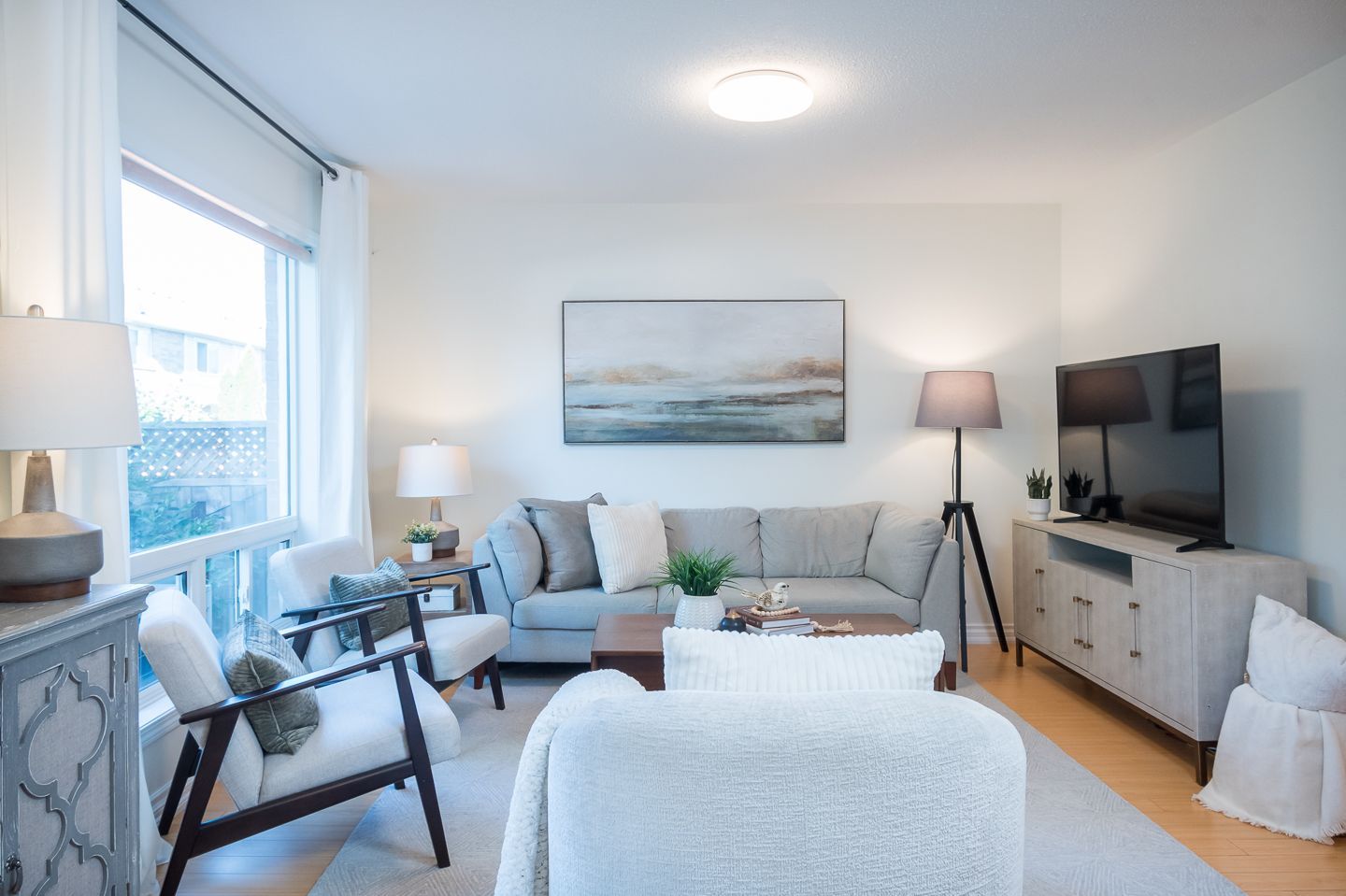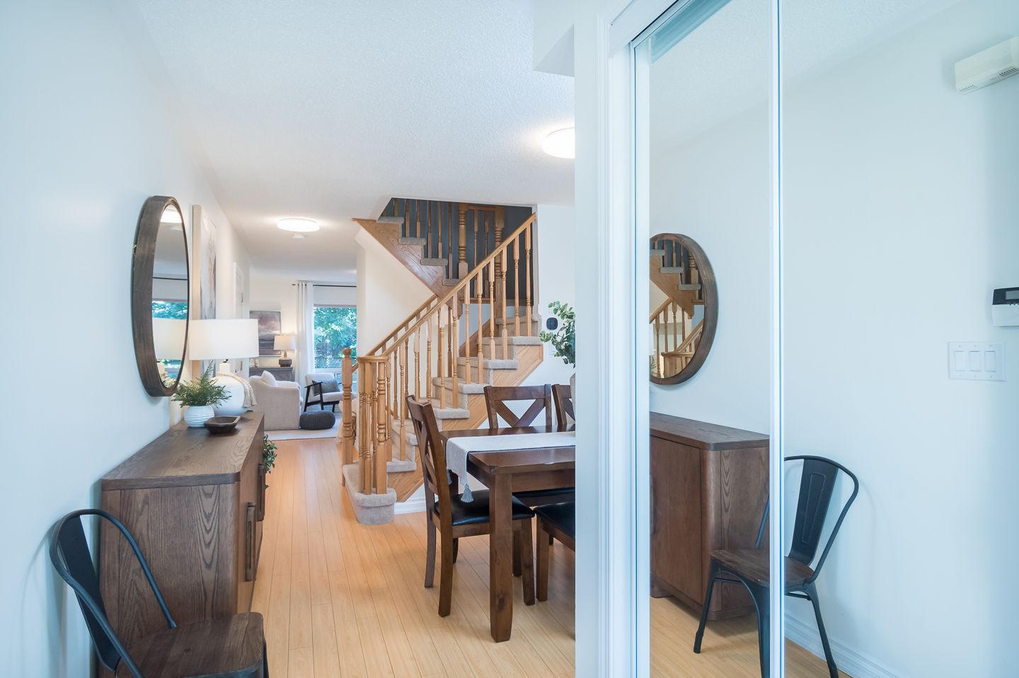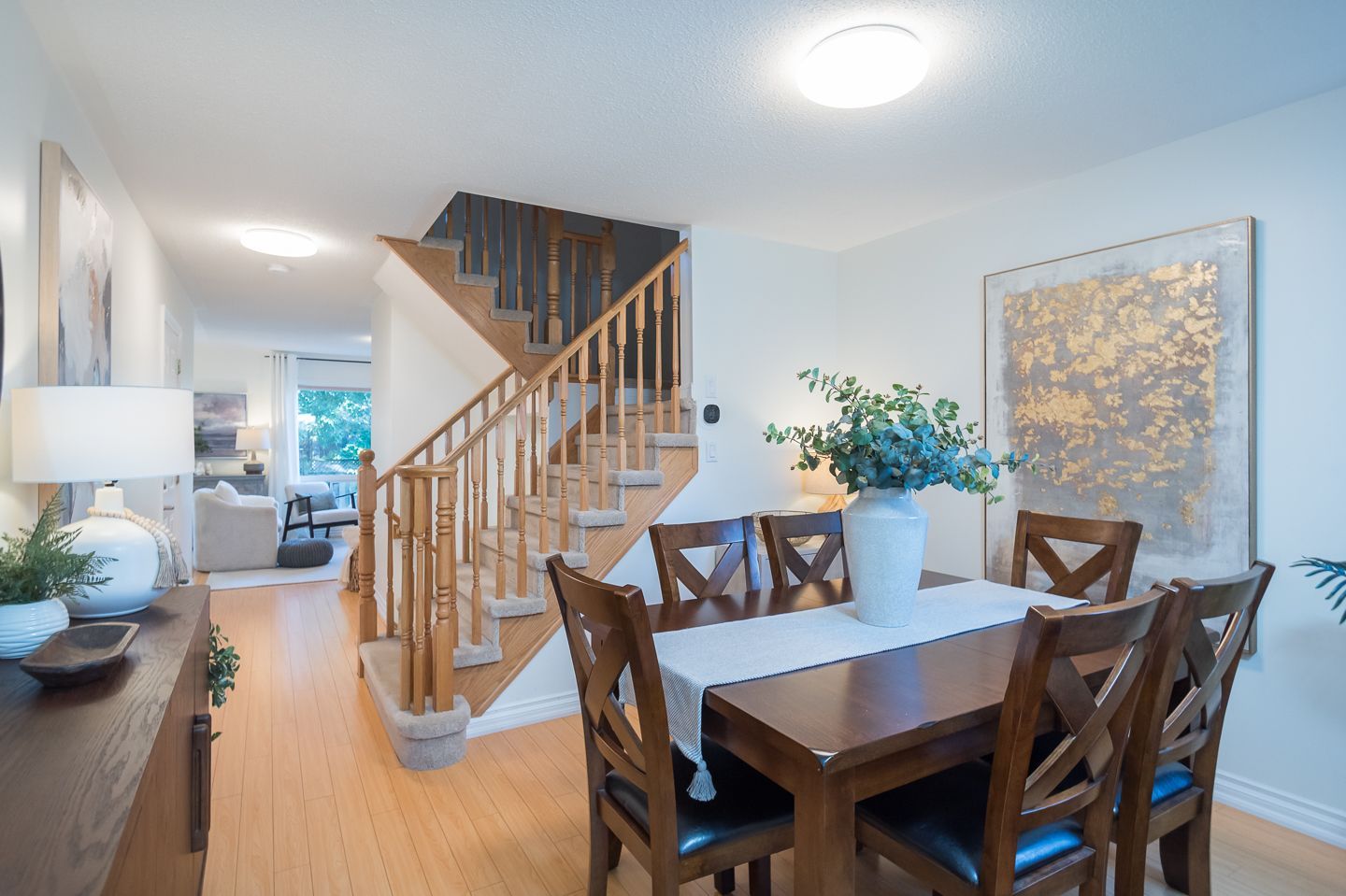 This lovely Freehold townhome boasts a newly renovated all White Kitchen with Quartz Countertops and Backsplash, Stainless Steel appliances and under-cabinet lighting, opening to a Fully fenced backyard with mature trees and a lush garden. The open concept living room flows seamlessly into the distinct dining area, creating a warm and versatile space. A convenient two-piece powder room completes the main floor space.