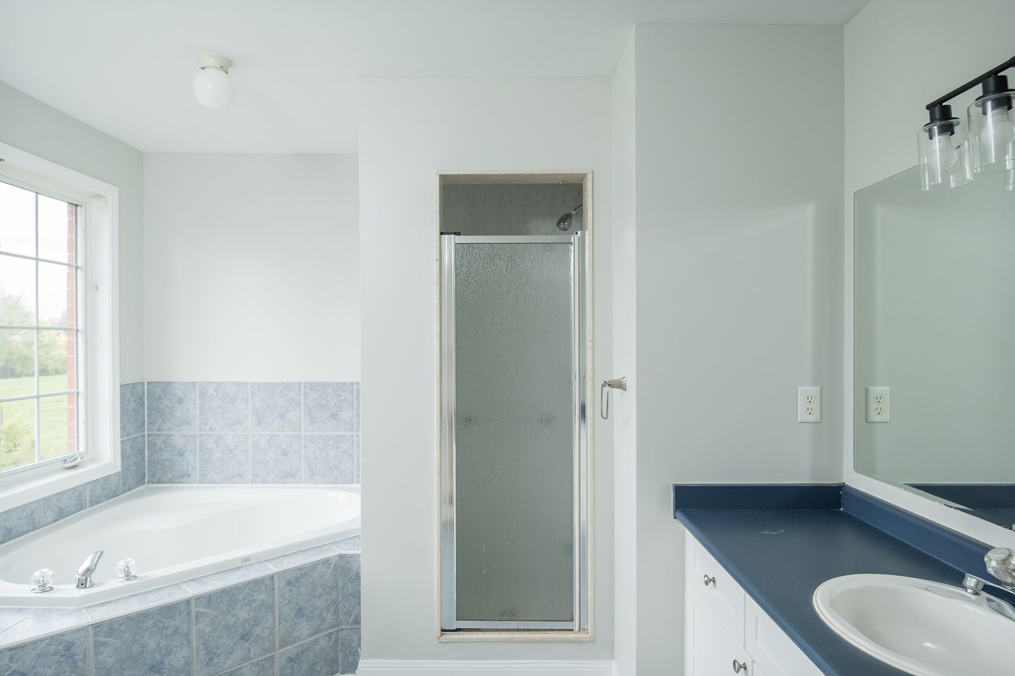 Primary: walk-in closet and ensuite bath with soaker tub and separate shower