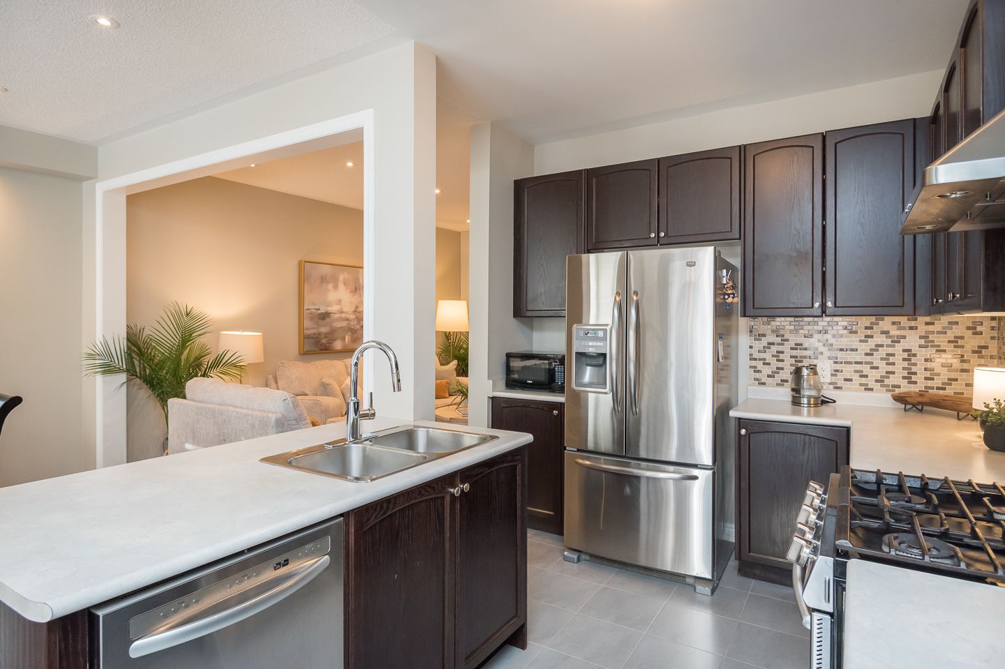 Step inside and feel the warmth of 9-foot ceilings, gleaming hardwood floors, and soft, ambient lighting from pot lights that set the tone for elegant yet comfortable living. The open-concept main floor makes it easy to connect with loved ones, whether you're enjoying quiet evenings in or hosting lively get-togethers. The heart of the home — a modern eat-in kitchen — is equipped with stainless steel appliances, rich cabinetry, a sleek tile backsplash, and a walkout to the backyard. Whether you’re sipping your morning coffee or grilling with the gas BBQ hookup on summer evenings, the fully fenced yard is ready for your next memory.